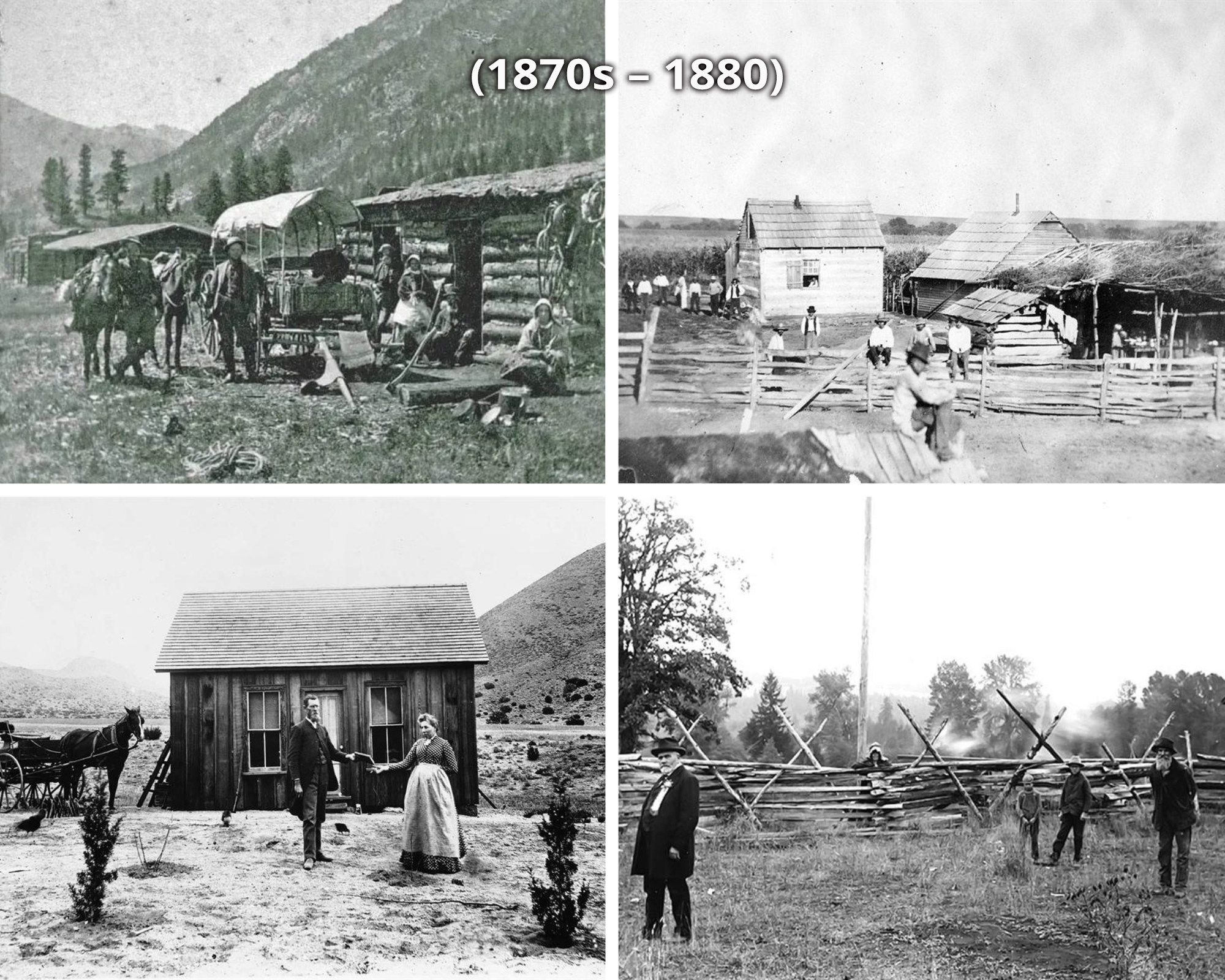 Armed with little more than axes and crosscut saws, and relying on horse or ox-drawn wagons, they felled trees in staggering numbers. By the decade’s close, much of the easily reached pine and spruce had vanished. It was cut down or consumed in fires set to clear the slash. Hillsides once shaded by dense forests stood bare, reduced to stump-studded clearings and grassy meadows.(6) When the timber nearest to their homesteads was gone, many settlers shifted to ranching, grazing cattle and sheep on the very ground where towering trees had stood just years before.