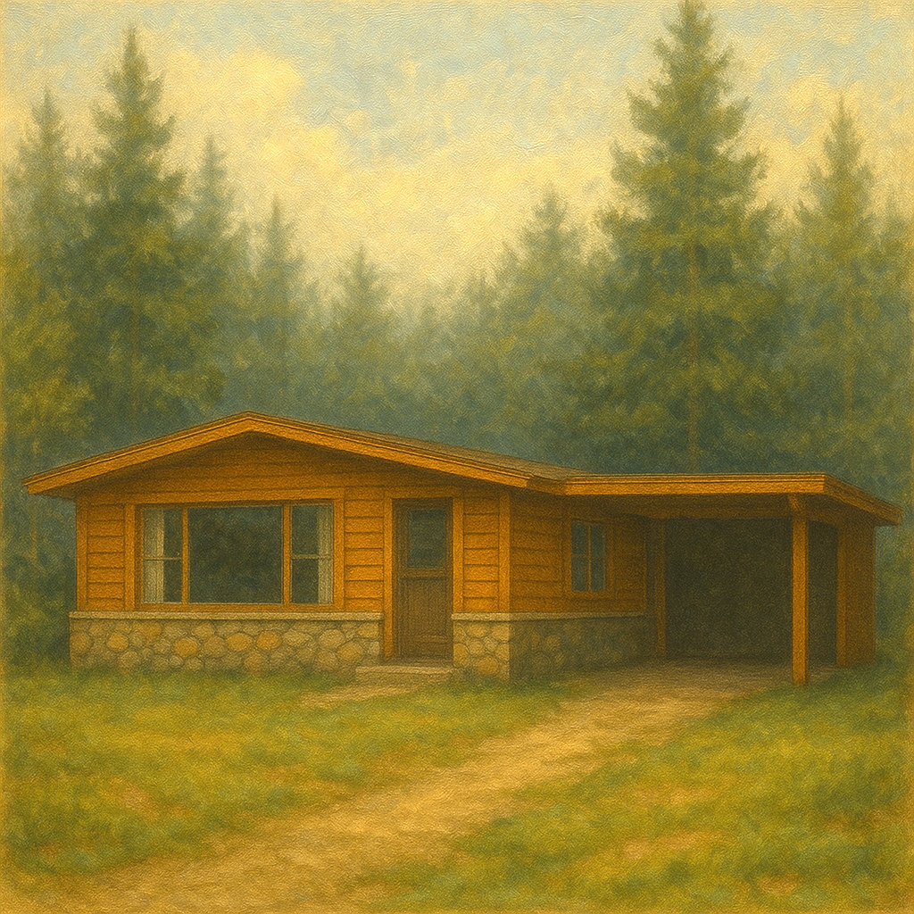 As suburban ranch houses swept the nation, their long, low profiles migrated to mountain lots. Vacation cabins borrowed the look: broad picture windows, carports, and frame construction with touches of stone or log veneer. These homes blended suburban comfort with rustic appeal, creating a bridge between city life and mountain retreats in Pinehaven.