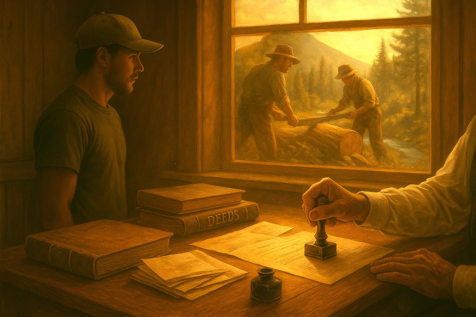 At midday Elmina appeared with bread, meat, and sunlight-colored flour on her cheek. The boys lifted, carried, argued, and learned. John, at a crate-table, dipped a pen and signed the documents the government would later honor and the mountains were honoring now.
